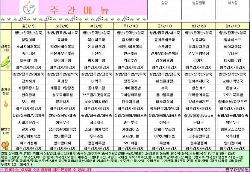 25년7월2주차식단 페이지 정보 작성자 영양팀장 댓글 0건 조회 114회 작성일 25-07-04 10:41 목록 본문 25년7월2주차식단 이전글25년 7월 3주차 식단 25.07.13 다음글25년7월1주차식단 25.06.26