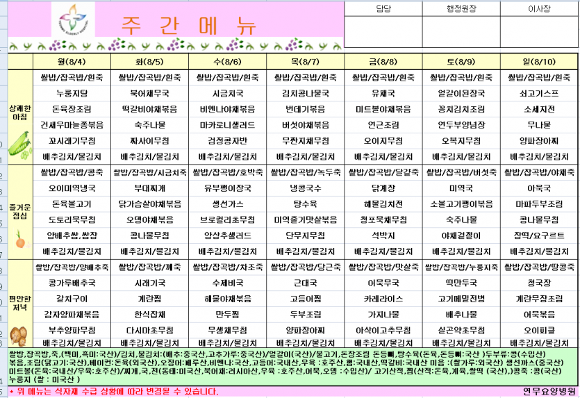 25년 8월 1주차 식단 페이지 정보 작성자 영양팀장 댓글 0건 조회 102회 작성일 25-08-01 12:52 목록 본문 25년 8월 1주차 식단 이전글25년8월2주차식단 25.08.09 다음글25년7월5주차식단 25.07.25