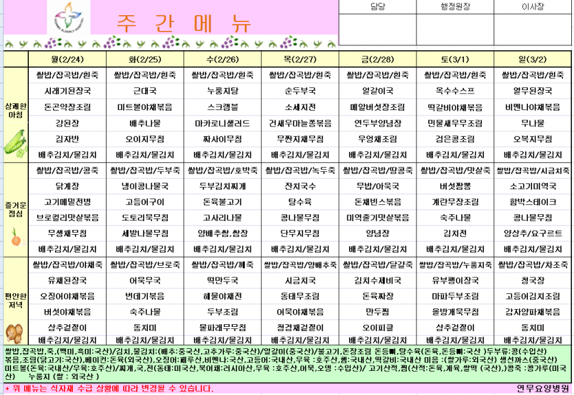 2월4주차식단 페이지 정보 작성자 영양팀장 댓글 0건 조회 116회 작성일 25-02-24 11:17 목록 본문 2월4주차식단 이전글3월1주차 식단표 25.02.27 다음글2월3주차식단 25.02.14