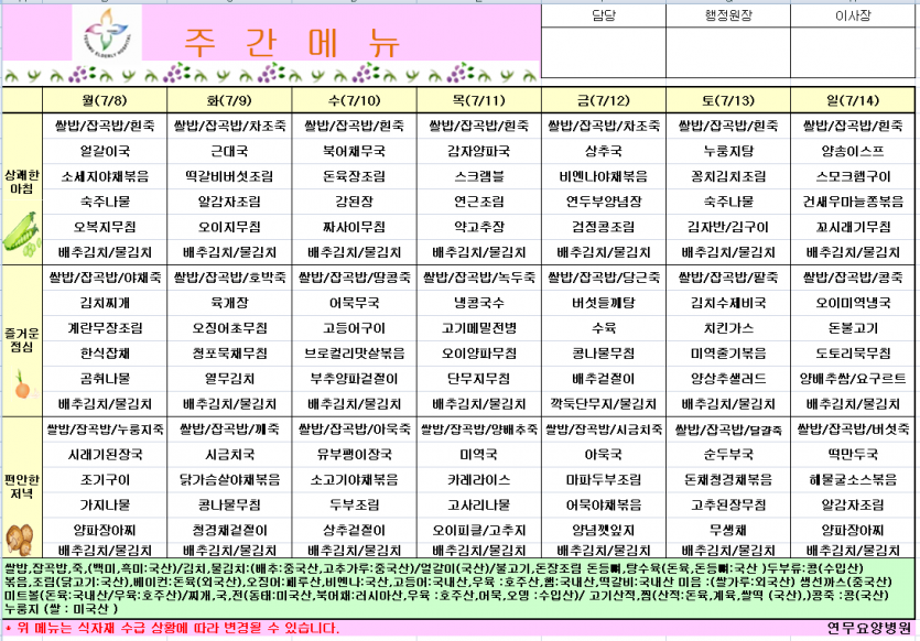 7월2주차식단 페이지 정보 작성자 영양팀장 댓글 0건 조회 128회 작성일 24-07-05 09:23 목록 본문 7월2주차식단 이전글7월3주차식단 24.07.13 다음글7월1주차식단 24.06.28