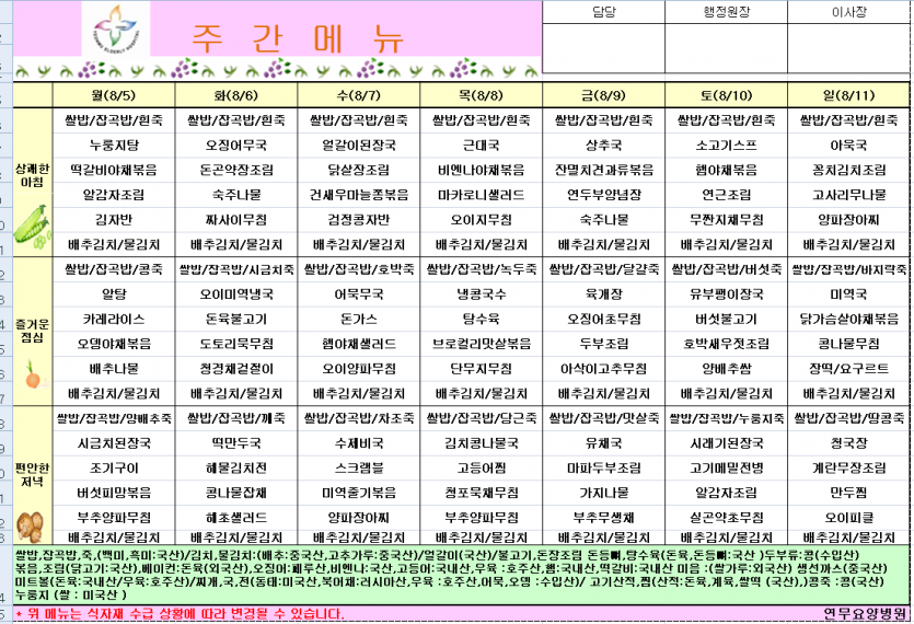 8월1주차식단 페이지 정보 작성자 영양팀장 댓글 0건 조회 125회 작성일 24-08-05 12:02 목록 본문 8월1주차식단 이전글8월2주차식단 24.08.08 다음글7월5주차식단 24.07.26