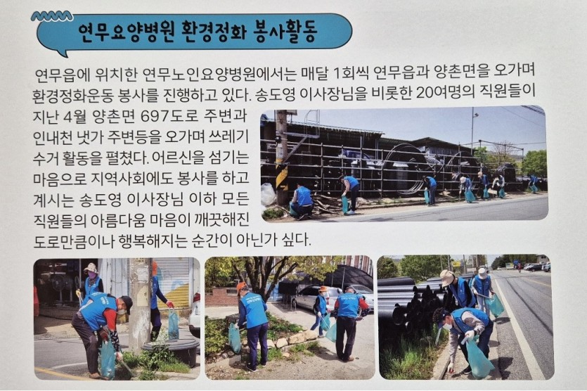 환경미화 봉사진행 내용이 양촌면 소식지(2024년 제2호)에 실렸습니다.
