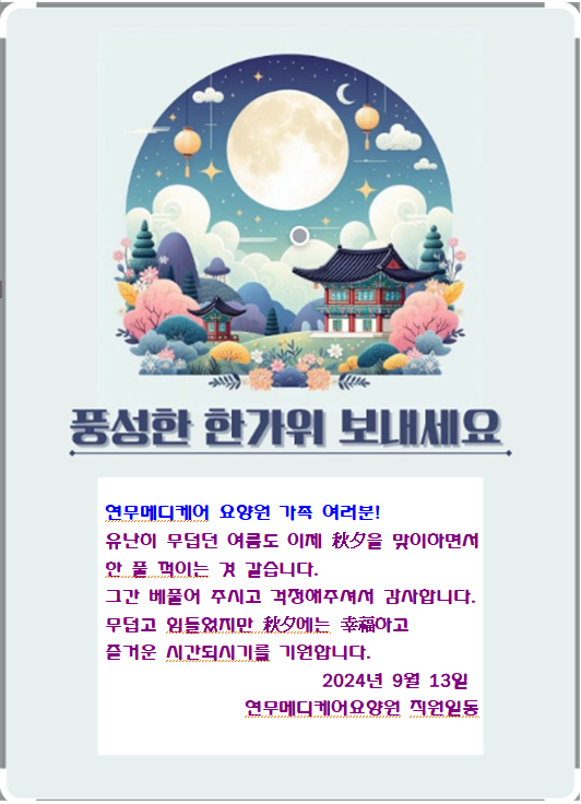 즐겁고 행복하고 풍성한 24년 추석보내세요!