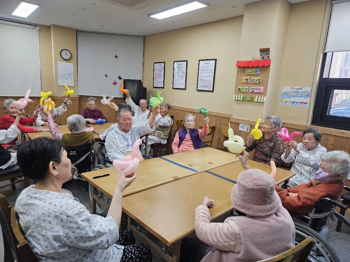 2026.01.20 ( 풍선아트 ) 페이지 정보 작성자 사회복지사 댓글 0건 조회 62회 작성일 26-01-20 17:35 목록 본문 2026.01.20 이전글2026.01.21 ( 미술활동 ) 26.01.21 다음글2026.01.19 ( 민속놀이 ) 26.01.19