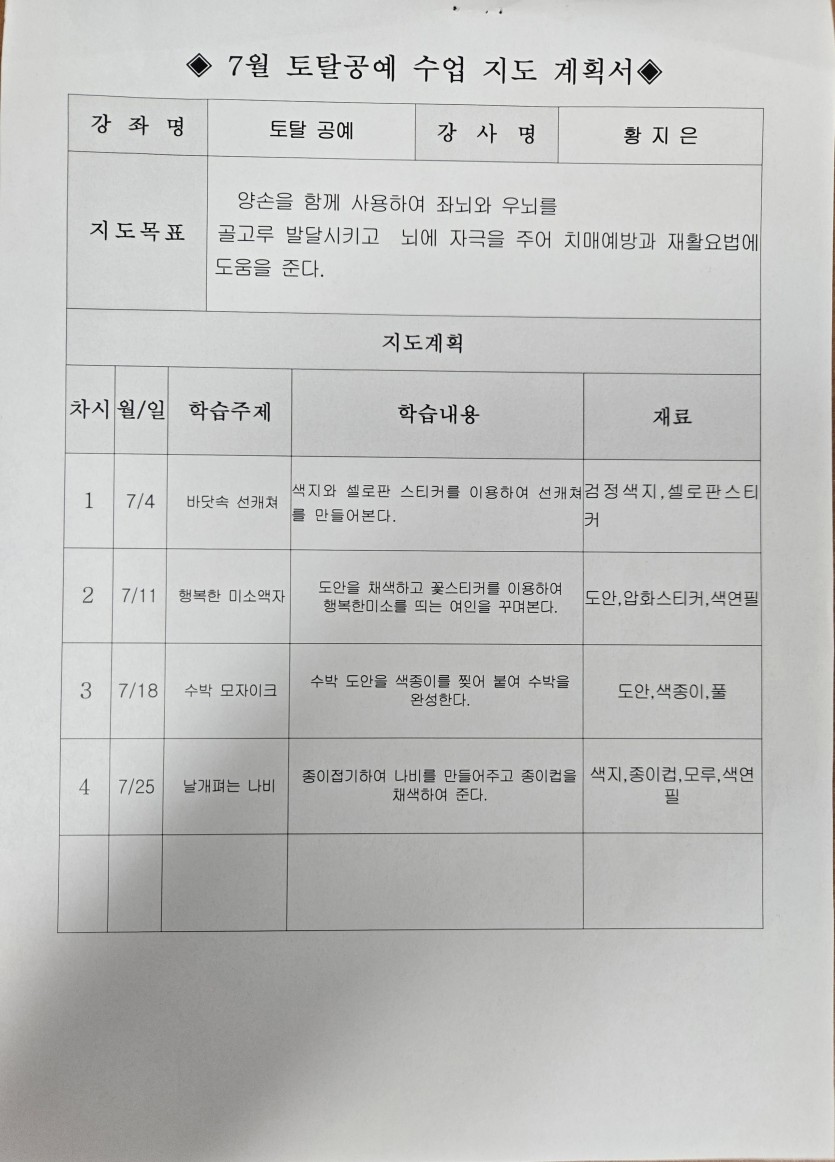 - 다음글6월 맞춤형 프로그램.토탈공예 프로그램 계획안 25.06.04