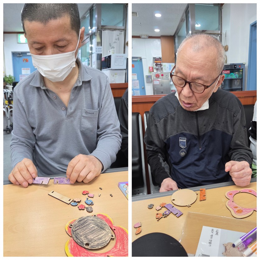 봄을 맞이하여 나비모양의 우드판을 색칠하여 , 봄을 상징하는 벌, 꽃, 나비 등등의 우드판을 붙혀보는 활동을 하였습니다.