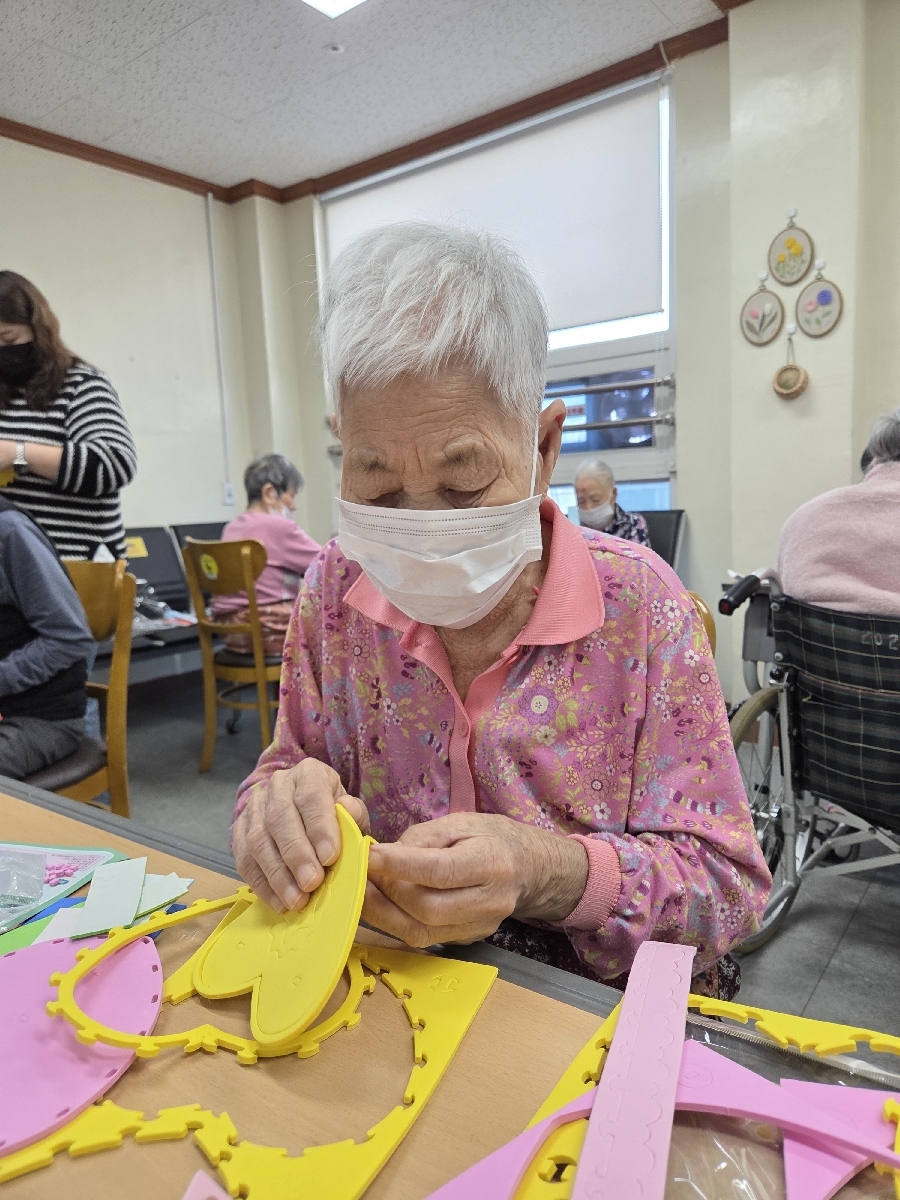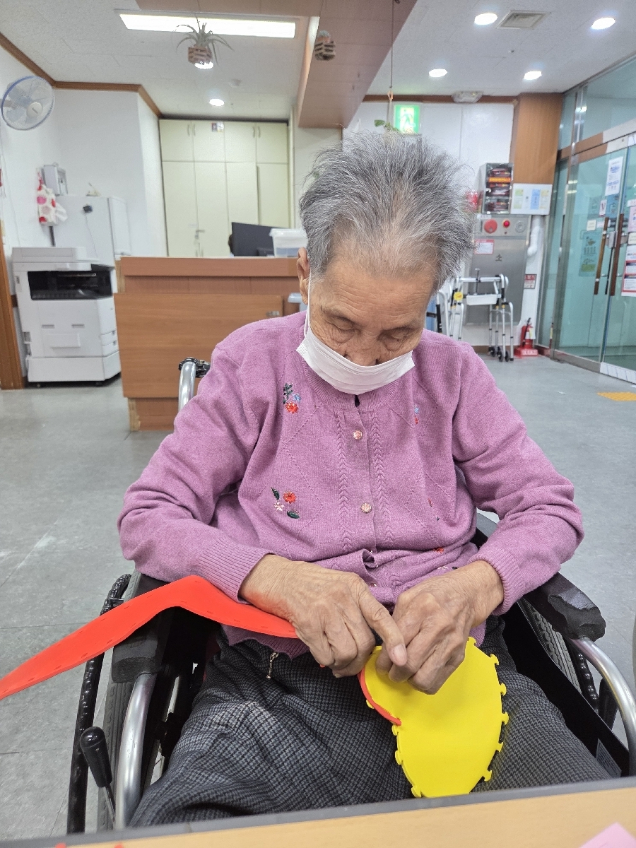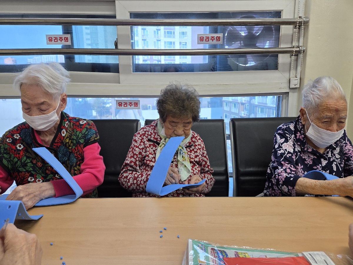 양손을 함께 사용하여 좌뇌 우뇌를 골고루 발달 시키고, 뇌에 자극을 주어 치매 예방에도 아주 도움이 되는 활동이었습니다.