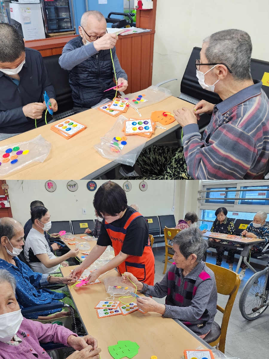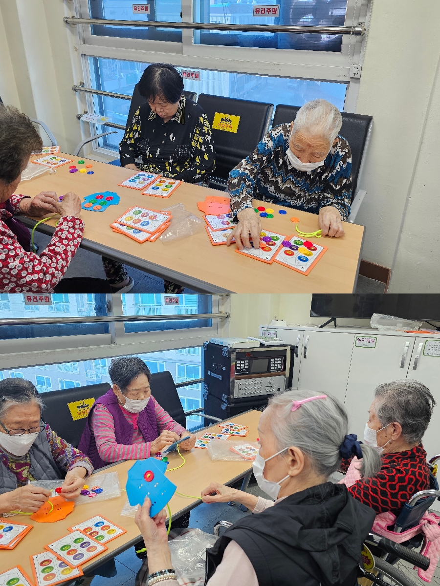 단추를 꿰면서 손 운동 뿐만 아니라, 시공간 능력 향상에도 도움이 되는 활동이었습니다.