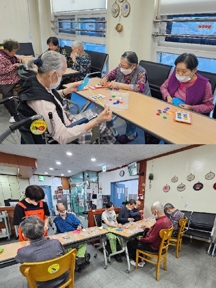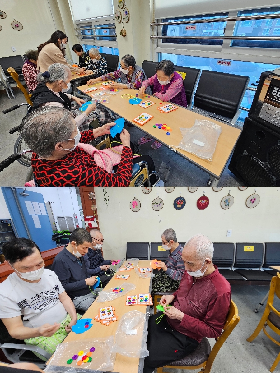 알록달록하게 꿰어진 완성된 작품을 보면서 어르신들 연신 곱다며 스스로 잘했다고 이야기 하시기도 하였습니다.