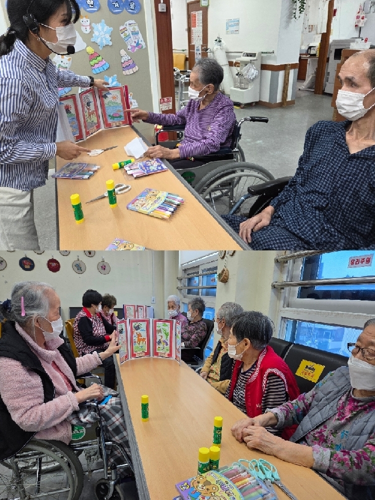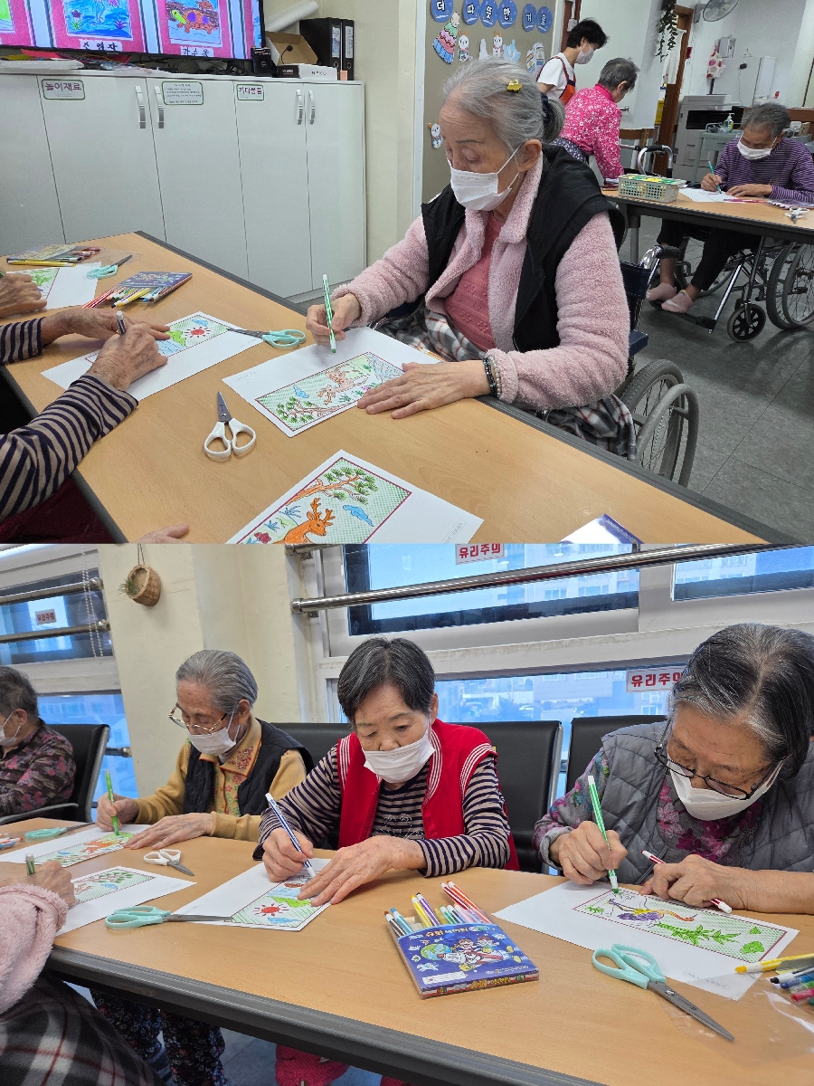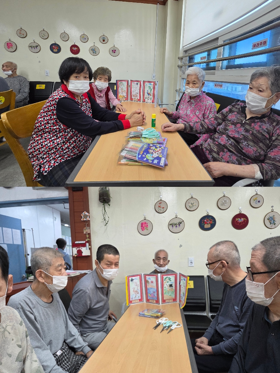 어르신들이 이건 너무 예쁘다며 환경판에 붙혀 놓자고 말씀하셔서 환경판에 붙히고 오래 눈에 담기로 했습니다^^