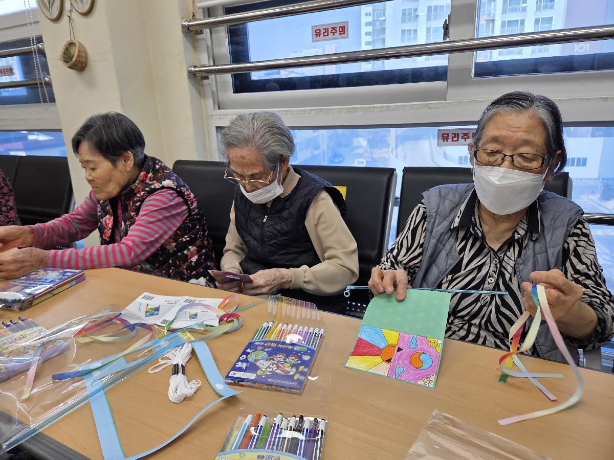 완성 후에는 서로의 작품을 비교하며 웃으시기도 하시고 환경판에 붙혀 달라고 말씀하시는 어르신들도 계셨습니다.