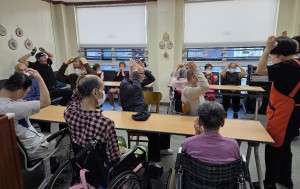 1월 8일 프로그램(건강체조, 고깔모자 만들기)