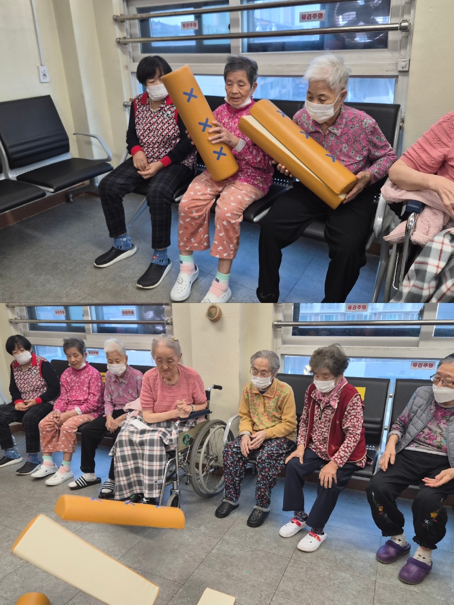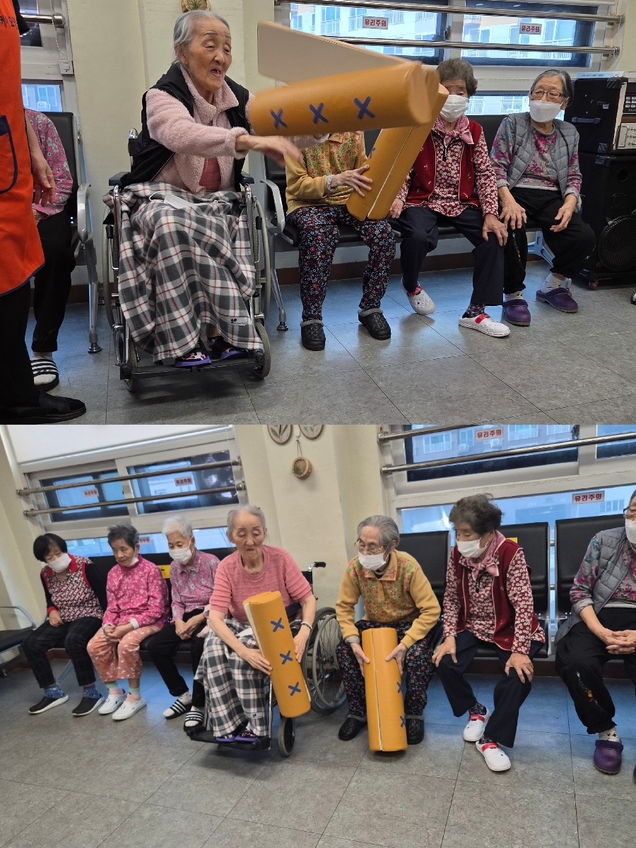 어르신께서 윷놀이를 요청하셔서 설날 느낌으로 같이 '까치까치 설날은 어저께고요' 동요를 시작으로