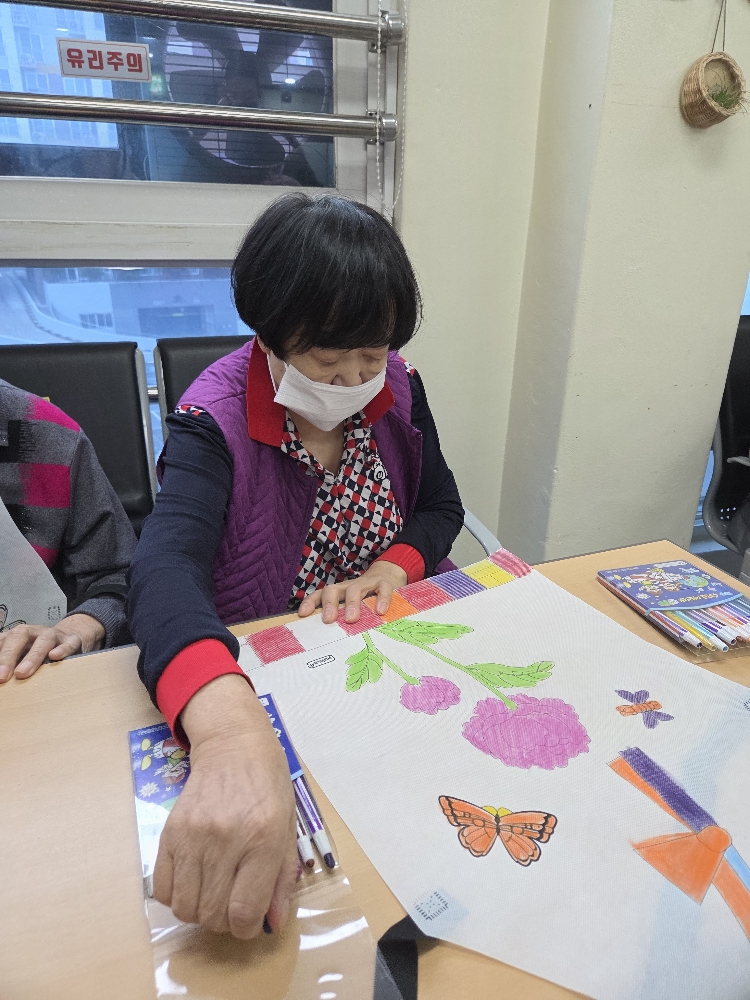 색칠하는 작업을 통해 손 기능 향상, 정서적인 안정, 성취감을 느낄 수 있었습니다.