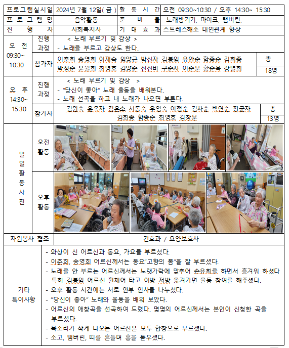 2024.07.12(음악활동) 페이지 정보 작성자 사회복지사 댓글 0건 조회 156회 작성일 24-07-14 10:38 목록 본문 2024.07.12 이전글24.07.15( 요리활동) 24.07.16 다음글2024.07.11(토탈공예) 24.07.11