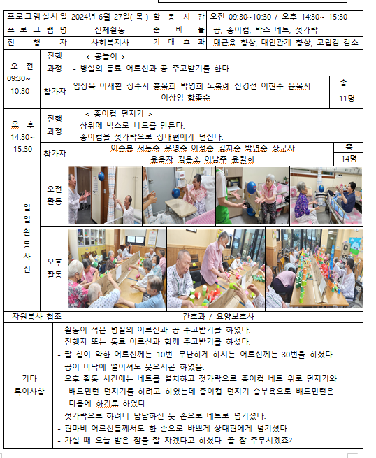 20.06.28 신체활동 페이지 정보 작성자 사회복지사 댓글 0건 조회 161회 작성일 24-06-27 18:01 목록 본문 2024.06.27 이전글2024.06.28( 음악 활동 ) 24.06.28 다음글24.06.26 색칠 공부 24.06.26