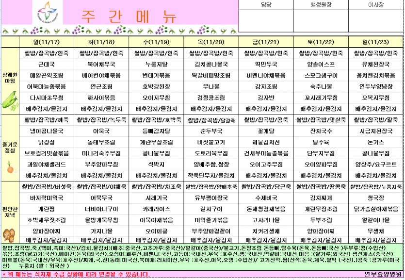25년 11월 3주차 식단 페이지 정보 작성자 영양팀장 댓글 0건 조회 86회 작성일 25-11-13 14:57 목록 본문 25년 11월 3주차 식단 이전글25년 11월 4주차식단 25.11.20 다음글25년 11월 2주차식단 25.11.08