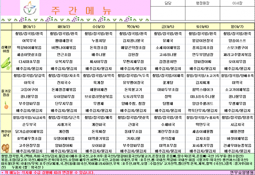 25년9월1주차식단 페이지 정보 작성자 영양팀장 댓글 0건 조회 145회 작성일 25-08-29 10:11 목록 본문 25년9월1주차식단 이전글25년9월2주차식단 25.09.05 다음글25년 8월 4주차식단 25.08.22