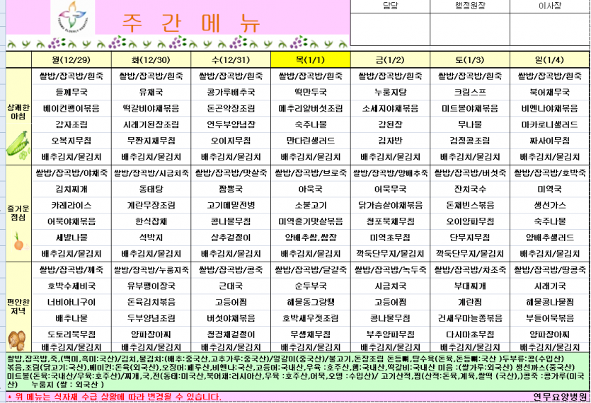 25년 12월 5주차식단 페이지 정보 작성자 영양팀장 댓글 0건 조회 69회 작성일 25-12-26 16:25 목록 본문 25년 12월 5주차식단 이전글26년 1월 1주차식단 26.01.02 다음글25년 12월 4주차식단 25.12.19