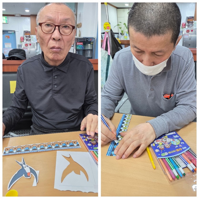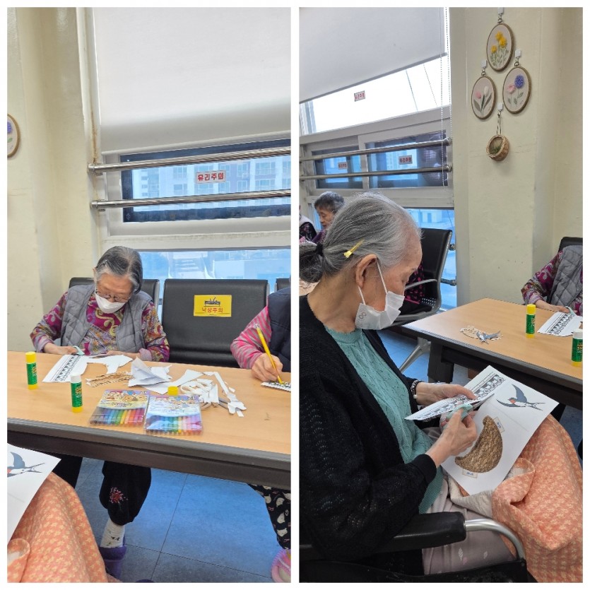 가볍게 손목도 돌려주고 어깨도 돌려주고 굳어있던 몸을 깨운 뒤에, 봄을 맞이하여 제비 도안을 색칠하고 꾸며 보았습니다.