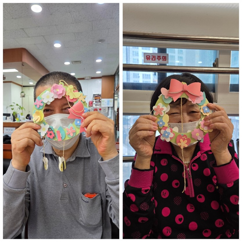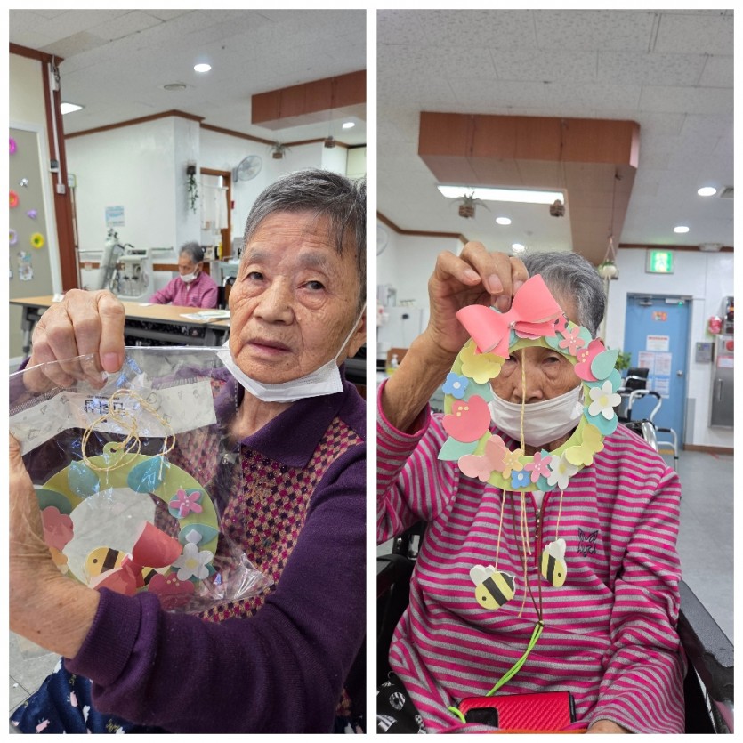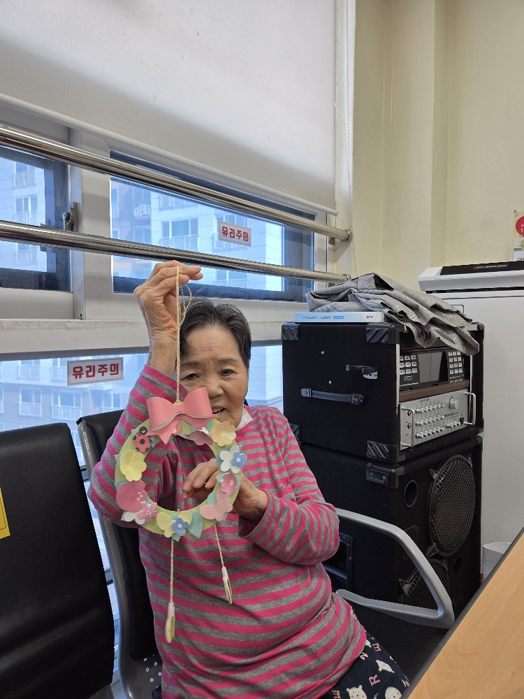 하나씩 리스 장식을 붙힐때 마다 연신 '예쁘다~' 를 반복하시며 만족스러워 하셨습니다. 얼른 봄 꽃들이 피어나 어르신들과 나들이갈 날을 기다려봅니다^^