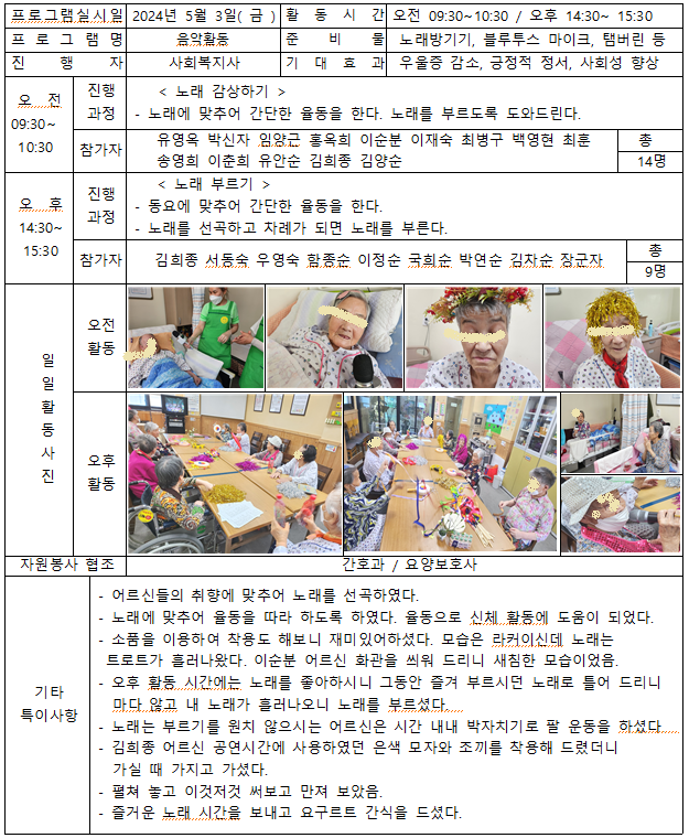 24.05.03 프로그램 페이지 정보 작성자 연무요양병원 댓글 0건 조회 226회 작성일 24-05-03 18:01 목록 본문 24.05.03 프로그램 이전글6.17 프로그램(윷놀이) 24.06.18 다음글24.05.02 프로그램 24.05.03